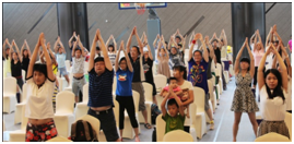 参会家庭学习做健身操